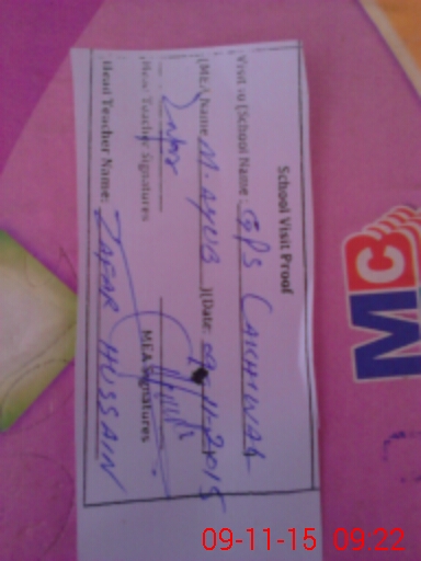 | Attendance Register | Head Teacher | MEA with School | Visit Proof |