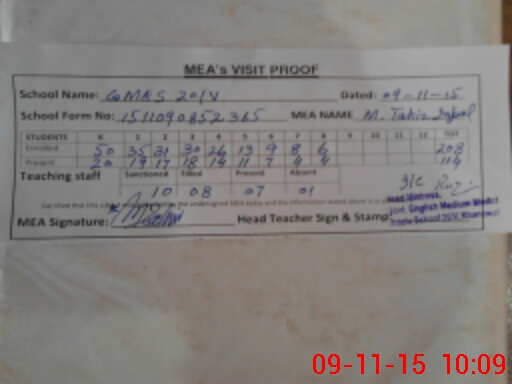 | Attendance Register | Head Teacher | MEA with School | Visit Proof |