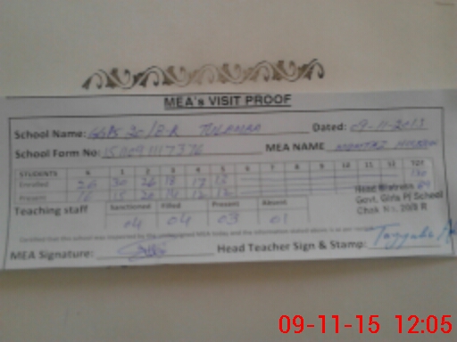 | Attendance Register | Head Teacher | MEA with School | Visit Proof |