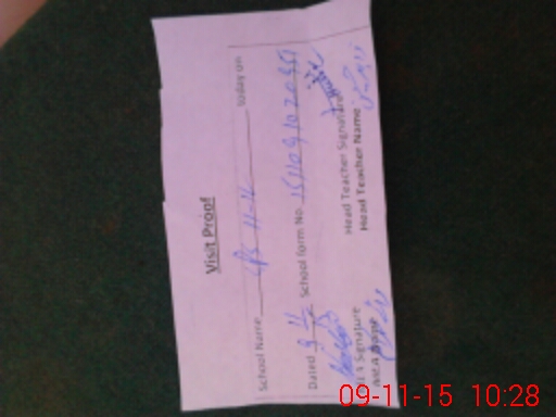 | School Visited by School Health & Nutrition Supervisor (No. of Visits) | 1 | Name1: | KHALID JAVID | Name2: | |