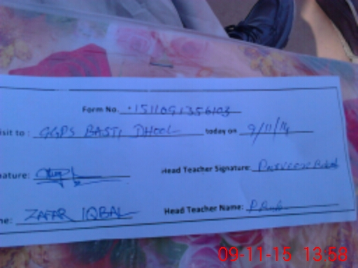 | Monitoring Date: 09-11-2015 | Start Time: 09-11-2015 01:46 PM | End Time: 09-11-2015 01:59 PM | Name of MEA: Za**** Iq**** Kh**** | |