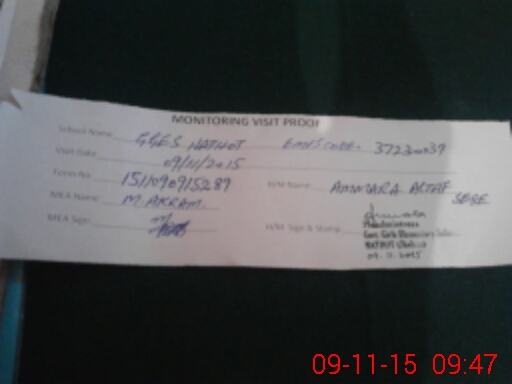 | Monitoring Date: 09-11-2015 | Start Time: 09-11-2015 08:44 AM | End Time: 09-11-2015 10:29 AM | Name of MEA: ZM**** Ak**** | |