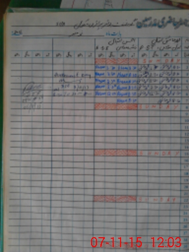 | CNIC | Full Name | Designation | R/C | Absence During Last Calender Month |