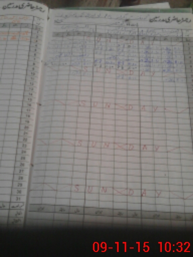 | CNIC | Full Name | Designation | R/C | Absence During Last Calender Month |