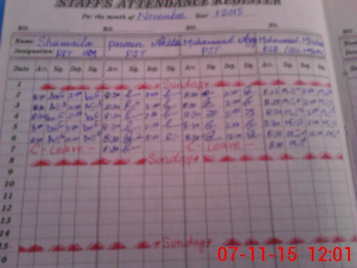| CNIC | Full Name | Designation | R/C | Absence During Last Calender Month |