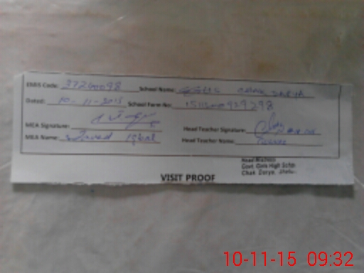 | Attendance Register | Head Teacher | MEA with School | Visit Proof |