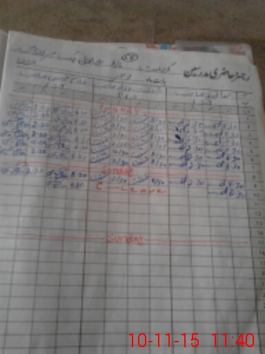 | CNIC | Full Name | Designation | R/C | Absence During Last Calender Month |