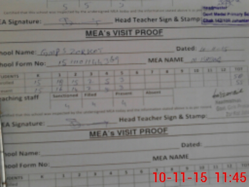 | Attendance Register | Head Teacher | MEA with School | Visit Proof |