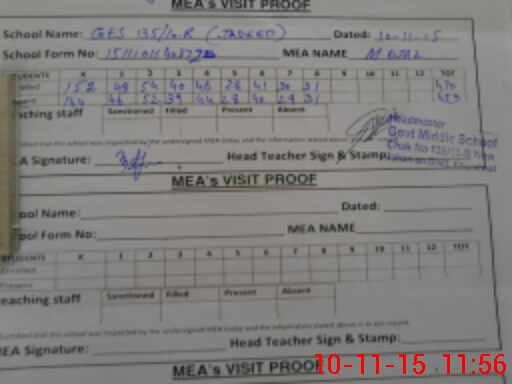 | Certified that this School was Inspected by the Undersigned MEA/DMO Today and the Information Stated Above is as Per Record. | |||||