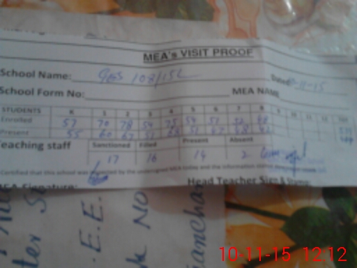 | Attendance Register | Head Teacher | MEA with School | Visit Proof |