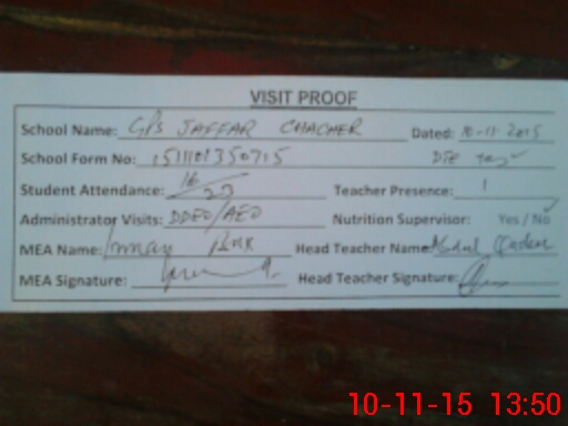 | EMIS Code: 32430126 | Name of School: GPS JAFFAR CHACHAR | |||