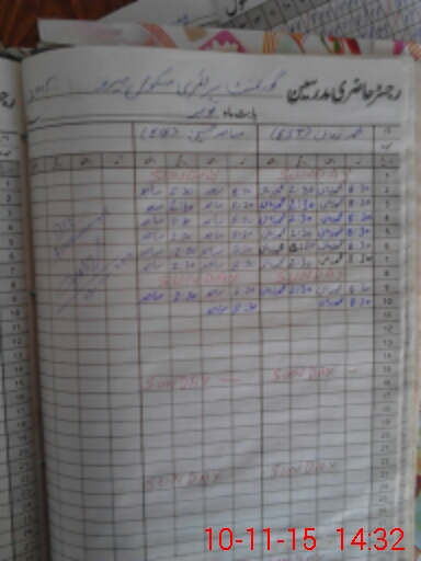 | CNIC | Full Name | Designation | R/C | Absence During Last Calender Month |