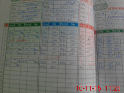 | CNIC | Full Name | Designation | R/C | Absence During Last Calender Month |