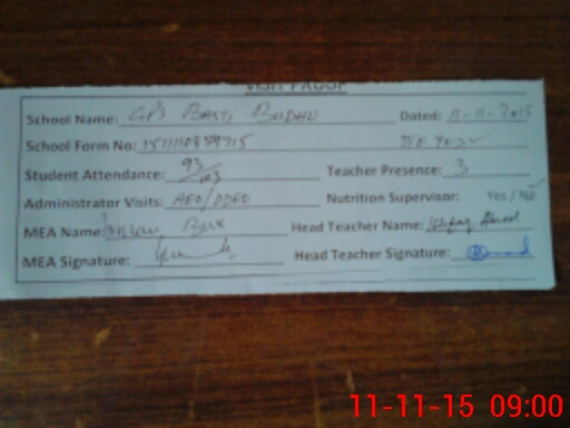 | Attendance Register | Head Teacher | MEA with School | Visit Proof |