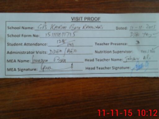 | Attendance Register | Head Teacher | MEA with School | Visit Proof |