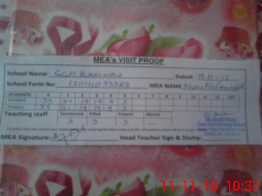 | EMIS Code: 36410601 | Name of School: GGPS RUKAN WALA | |||