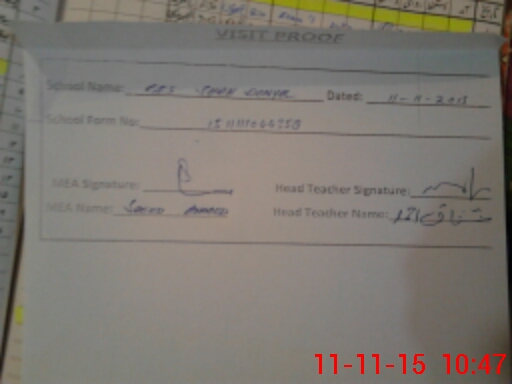 | Attendance Register | Head Teacher | MEA with School | Visit Proof |