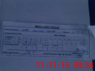 | Attendance Register | Head Teacher | MEA with School | Visit Proof |