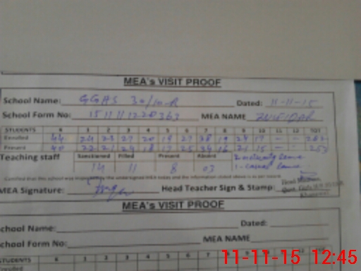 | Attendance Register | Head Teacher | MEA with School | Visit Proof |