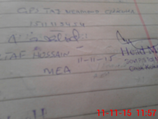 | Monitoring Date: 11-11-2015 | Start Time: 11-11-2015 11:16 AM | End Time: 11-11-2015 11:57 AM | Name of MEA: Al**** Hu**** BN**** | |