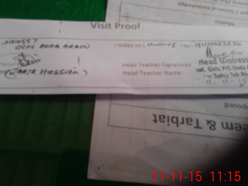 | Attendance Register | Head Teacher | MEA with School | Visit Proof |