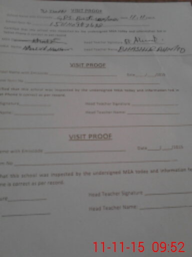 | Attendance Register | Head Teacher | MEA with School | Visit Proof |