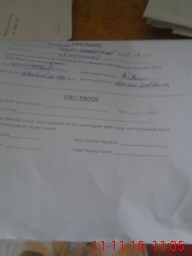 | Attendance Register | Head Teacher | MEA with School | Visit Proof |