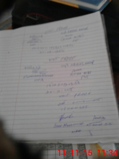 | Monitoring Date: 11-11-2015 | Start Time: 11-11-2015 11:16 AM | End Time: 11-11-2015 11:34 AM | Name of MEA: Sh**** Mu**** | |