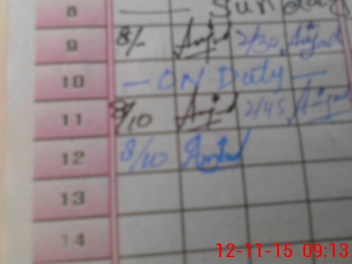 | Monitoring Date: 12-11-2015 | Start Time: 12-11-2015 08:54 AM | End Time: 12-11-2015 09:20 AM | Name of MEA: Z.**** M.Is**** | |