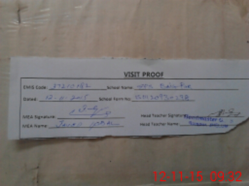 | Attendance Register | Head Teacher | MEA with School | Visit Proof |