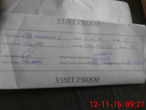 | Attendance Register | Head Teacher | MEA with School | Visit Proof |
