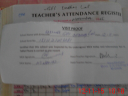 | Attendance Register | Head Teacher | MEA with School | Visit Proof |