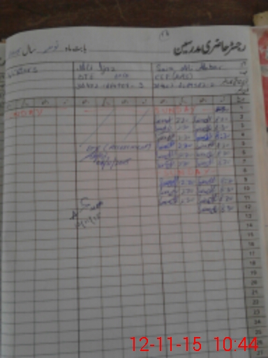 | CNIC | Full Name | Designation | R/C | Absence During Last Calender Month |