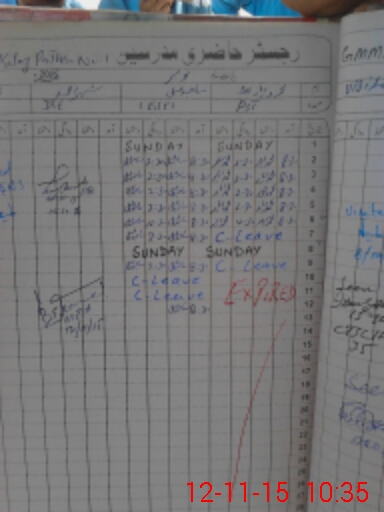 | CNIC | Full Name | Designation | R/C | Absence During Last Calender Month |