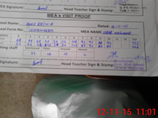 | Certified that this School was Inspected by the Undersigned MEA/DMO Today and the Information Stated Above is as Per Record. | |||||