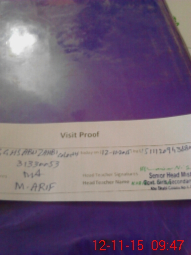 | EMIS Code: 31330053 | Name of School: GGHS ABU ZAHBI COLONY NO 1 | |||
