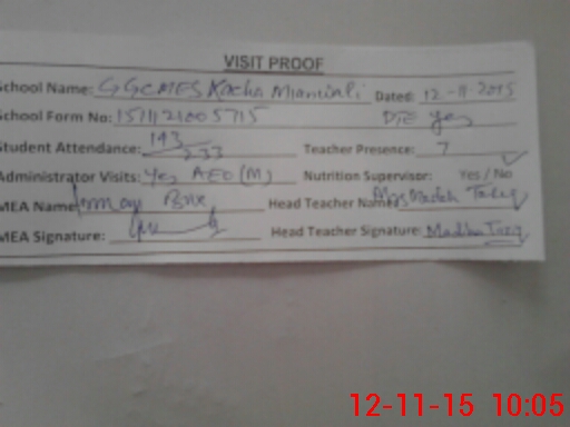 | Attendance Register | Head Teacher | MEA with School | Visit Proof |