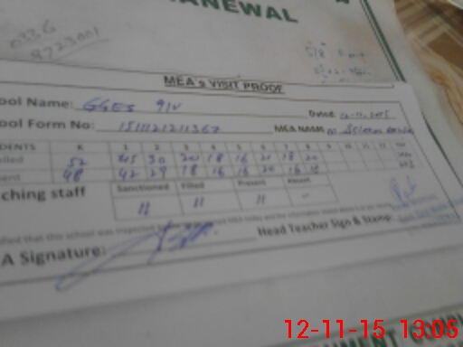 | Attendance Register | Head Teacher | MEA with School | Visit Proof |