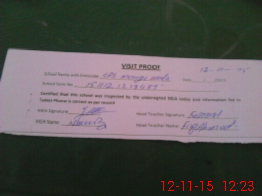 | Attendance Register | Head Teacher | MEA with School | Visit Proof |