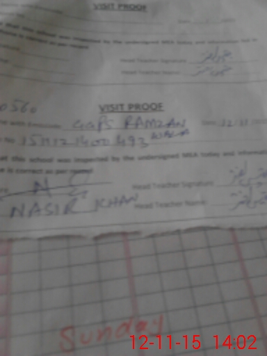 | Attendance Register | Head Teacher | MEA with School | Visit Proof |