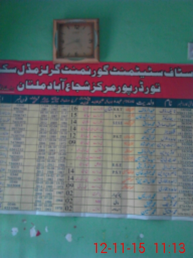 | District: MULTAN | Tehsil: SHUJA ABAD | Markaz: TODAR PUR - FEMALE | Level: Middle | |