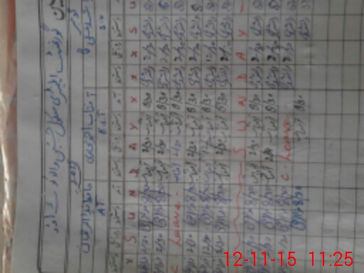 | CNIC | Full Name | Designation | R/C | Absence During Last Calender Month |