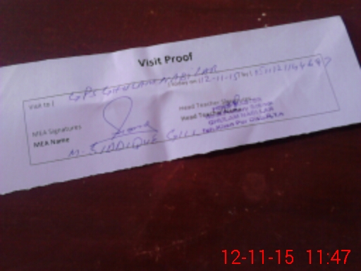 | Attendance Register | Head Teacher | MEA with School | Visit Proof |