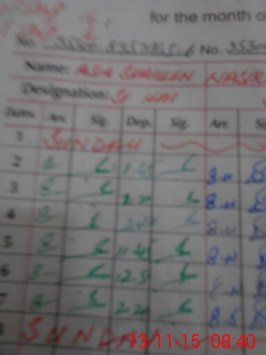 | CNIC | Full Name | Designation | R/C | Absence During Last Calender Month |