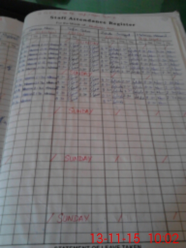 | CNIC | Full Name | Designation | R/C | Absence During Last Calender Month |