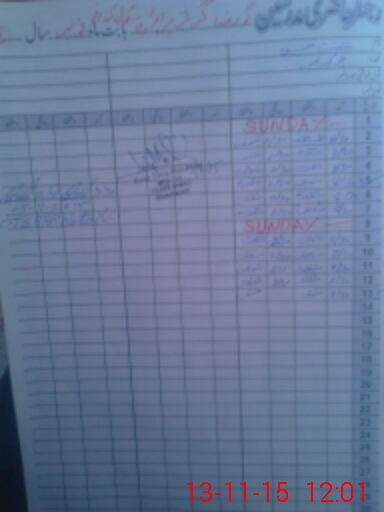 | CNIC | Full Name | Designation | R/C | Absence During Last Calender Month |