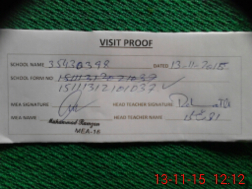 | Attendance Register | Head Teacher | MEA with School | Visit Proof |