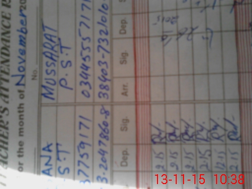 | Monitoring Date: 13-11-2015 | Start Time: 13-11-2015 10:28 AM | End Time: 13-11-2015 10:42 AM | Name of MEA: MU**** SA**** AL**** (R**** | |