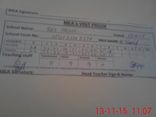 | Attendance Register | Head Teacher | MEA with School | Visit Proof |
