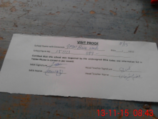 | Attendance Register | Head Teacher | MEA with School | Visit Proof |